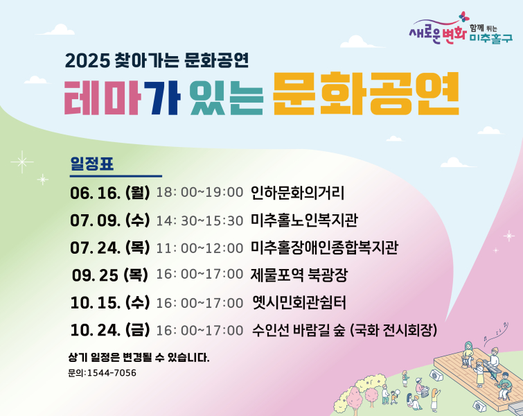 바람길 숲(숭의역)에서『2025년 인천 국화 전시회』와 함께하는 『테마가 있는 문화공연』이 개최됩니다.