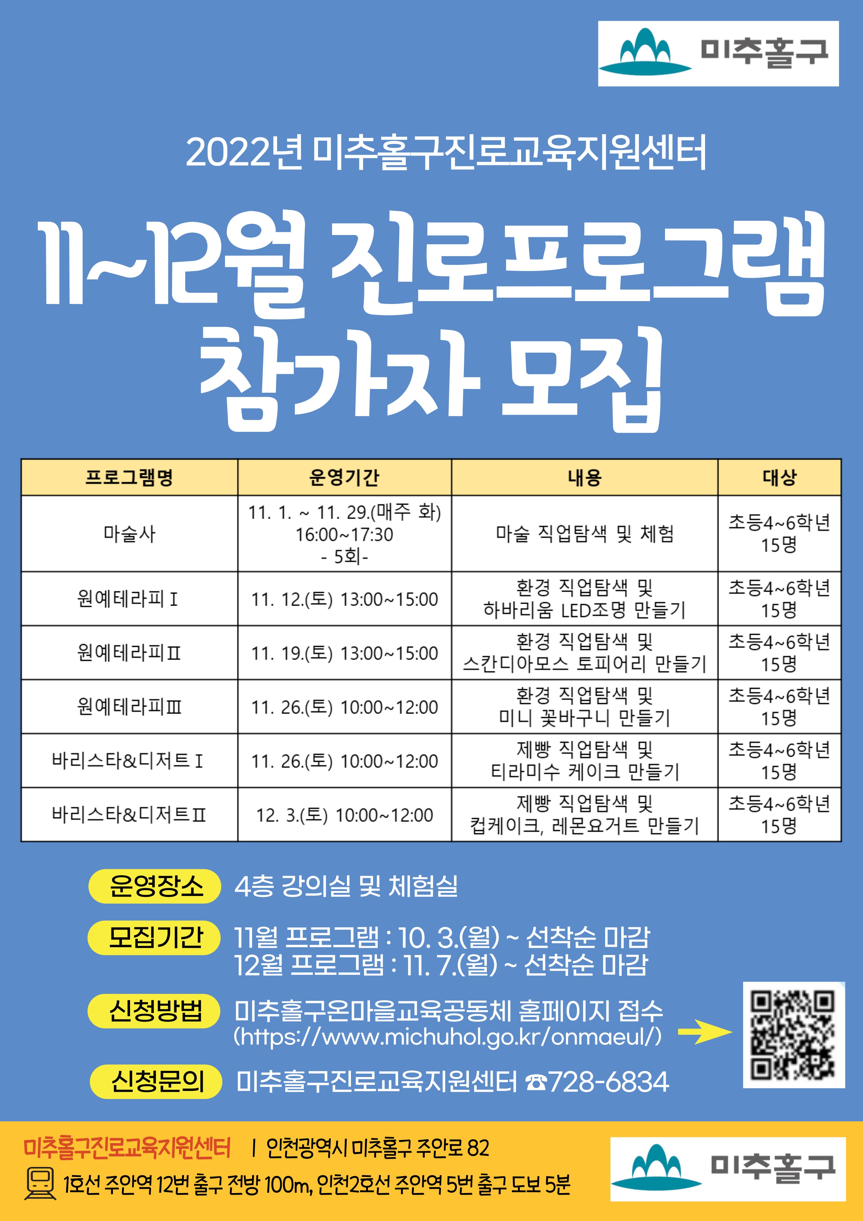 ○신청방법: 미추홀구온마을교육공동체 홈페이지 https://www.michuhol.go.kr/onmaeul/
