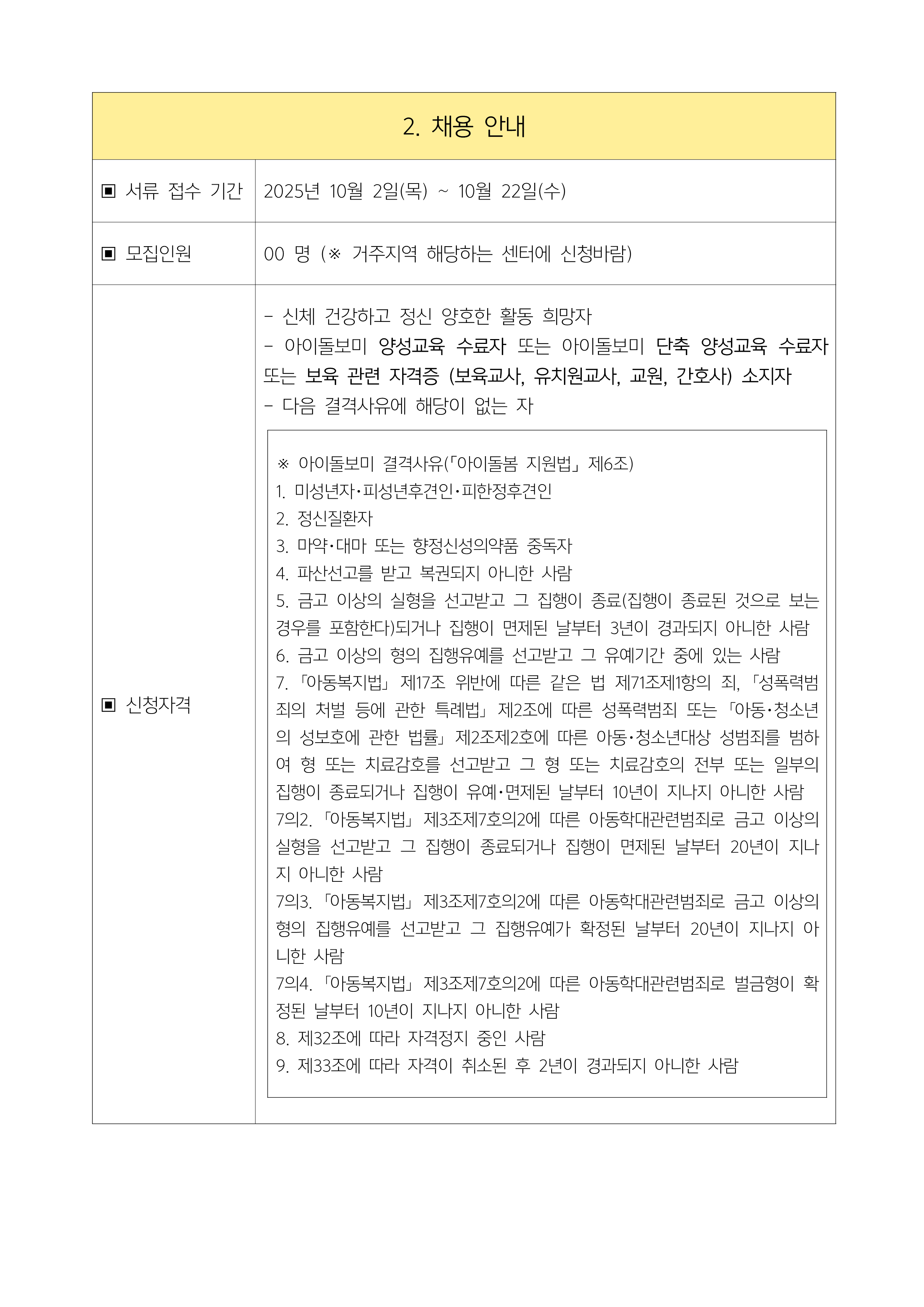 2025년 인천 미추홀구 아이돌보미 모집공고(2025. 10. 2. ~ 10. 22.)