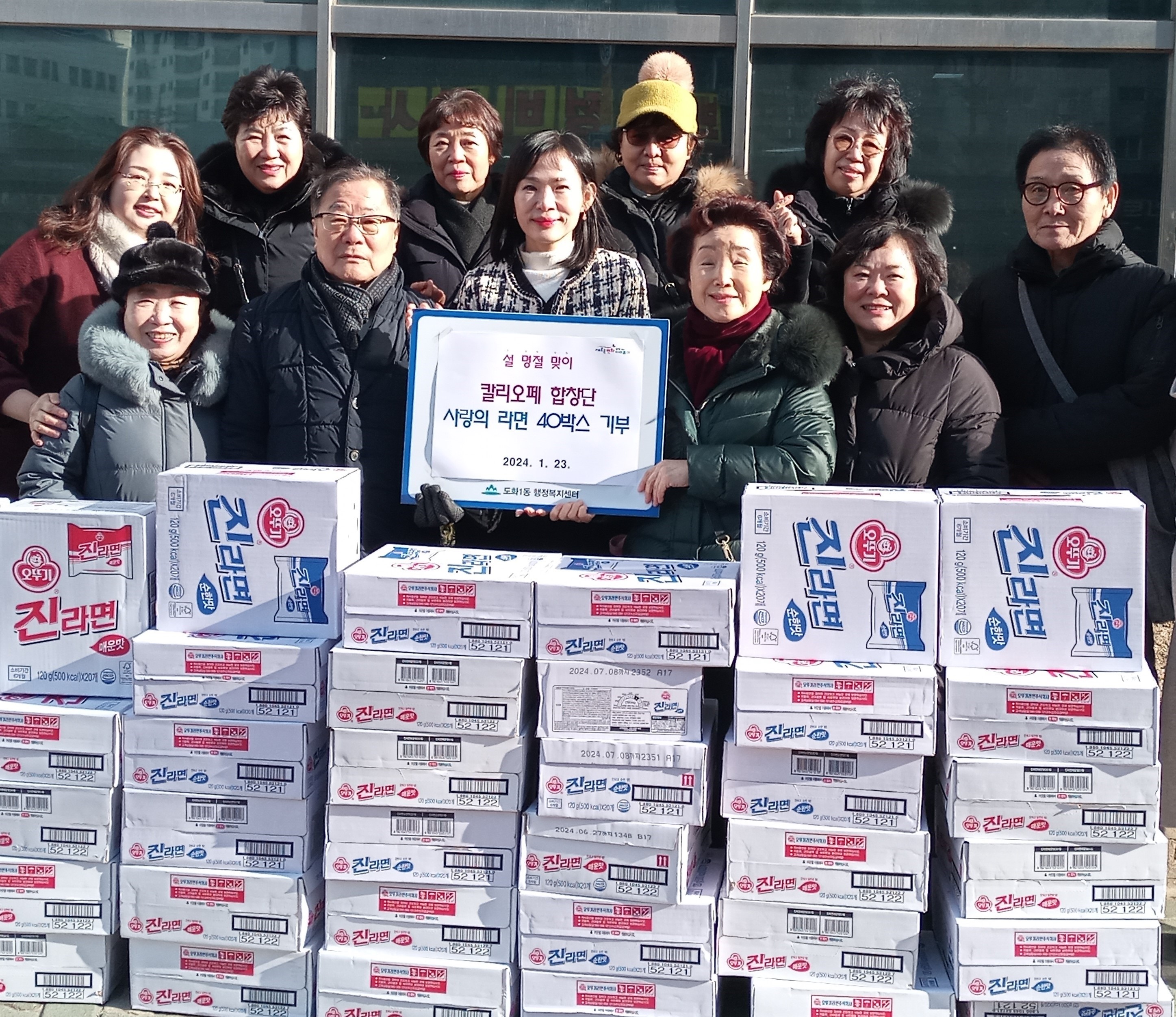 2024.1.23(화) 칼리오페합창단 이웃사랑 실천을 위한 라면 40박스 기부 행사를 진행하였습니다.