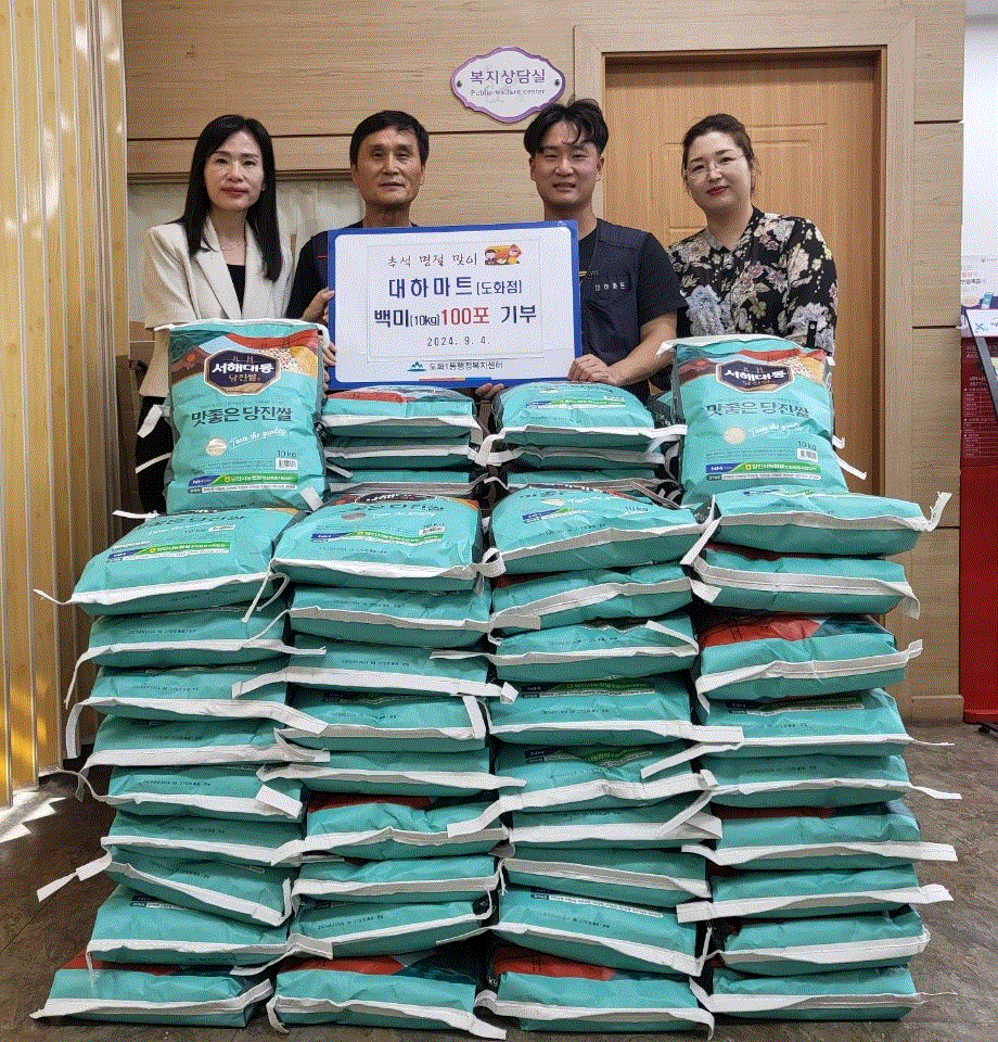 2024.9.4.(수) 대하마트 도화점에서 관내 저소득층을 위해 백미 10kg 100포 기부 및 전달 행사를 진행하였습니다.