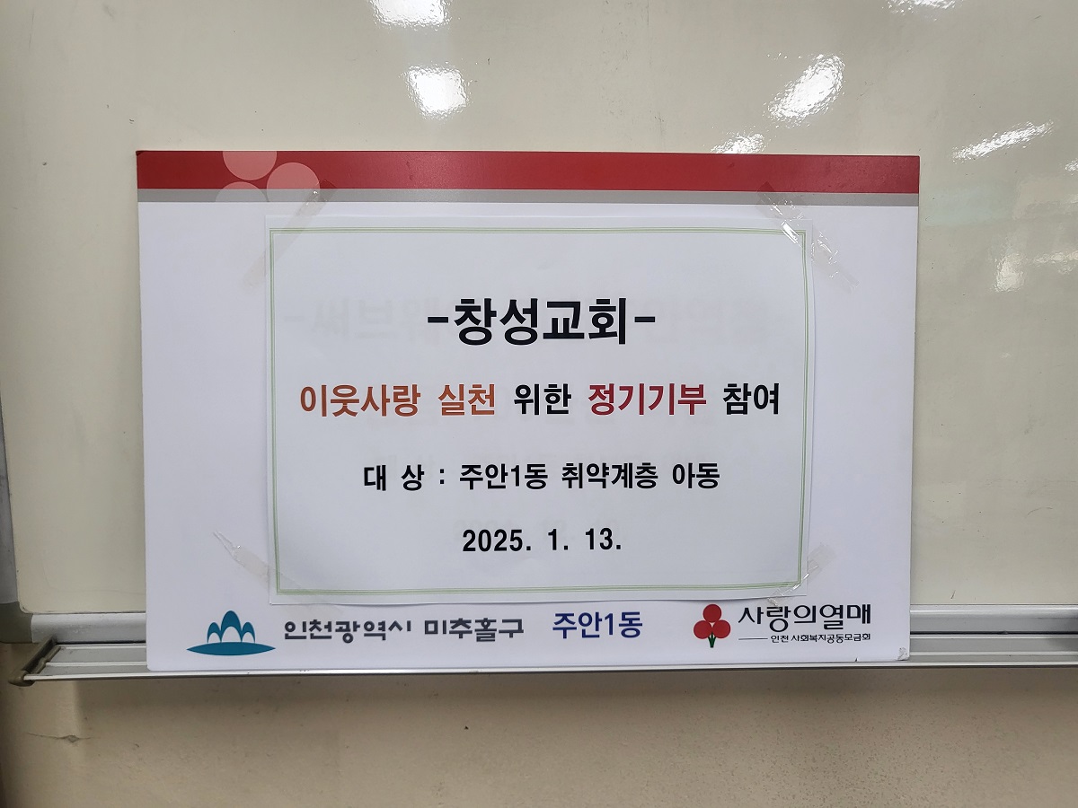 ○ 후 원 내 용 : 주안1동 취약아동 2세대 지원(디딤씨앗통장에 입금)