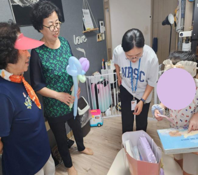 - 동 복지 담당, 명예사회복지 공무원이 가정 방문하여 아이들에게 학용품 전달