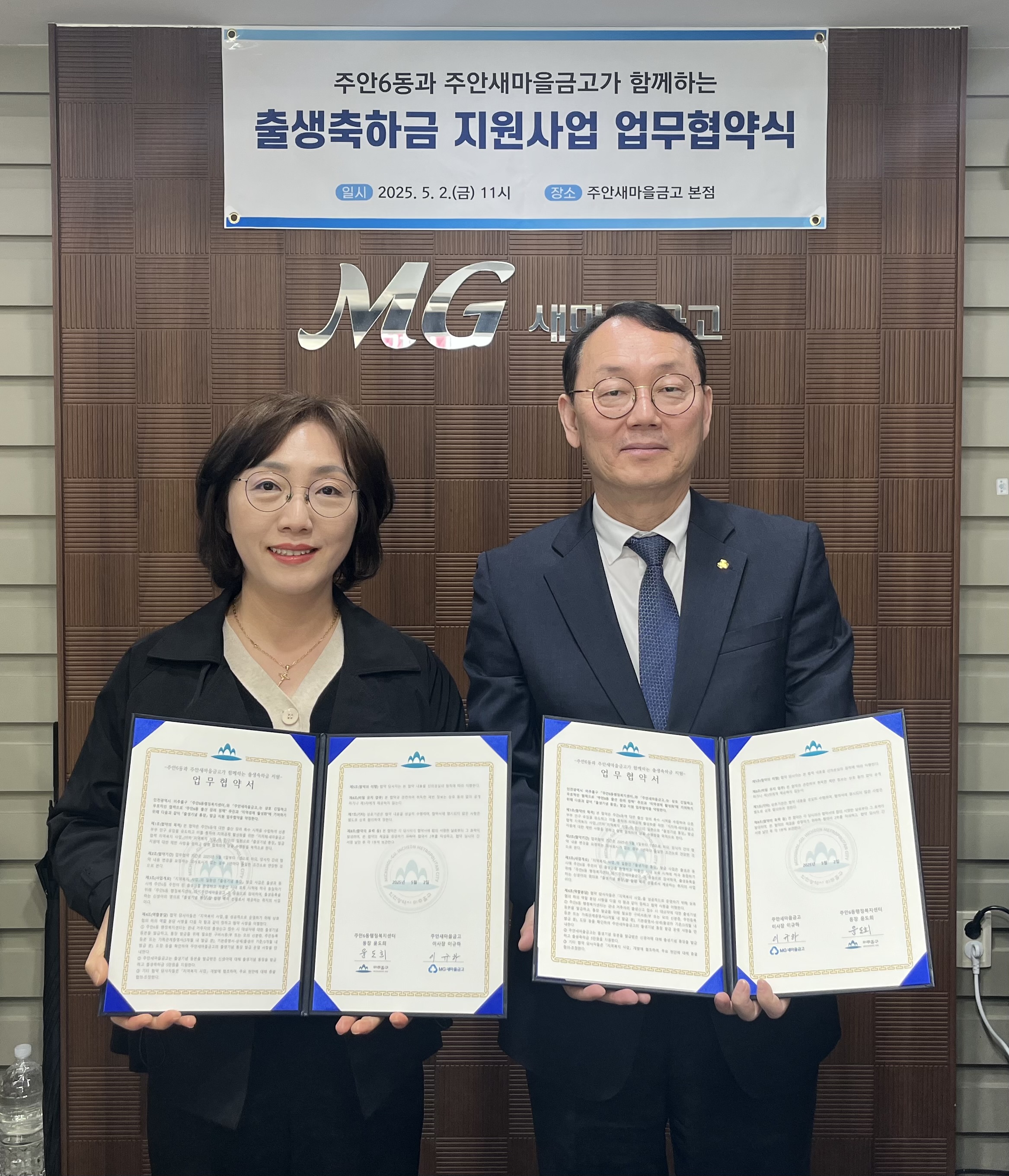 ○내용: 주안6동에 출생신고를 하면, 주안새마을금고에서 아기통장을 개설하고 출생축하금 5만원을 제공하는 사업 협약