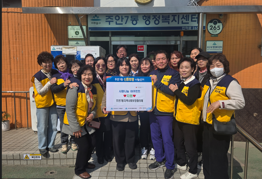 ○ 지원 단체 : 주안7동지역사회보장협의체 ○ 지원 일자 : 2026. 1월~ 6월 ○ 지원 내용 : 주2회 야쿠르트 지원을 통한 안부 확인○ 지원 대상 : 독거노인 등 취약계층 30가구