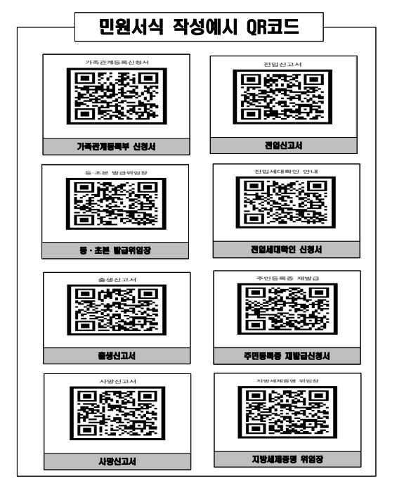 각종 증명서를 발급받기 위하여 행정복지센터를 방문하는 주민들에게 민원서류 작성예시를 정보무늬(QR코드)로 자체 제작하여 작성방법을 안내한다.