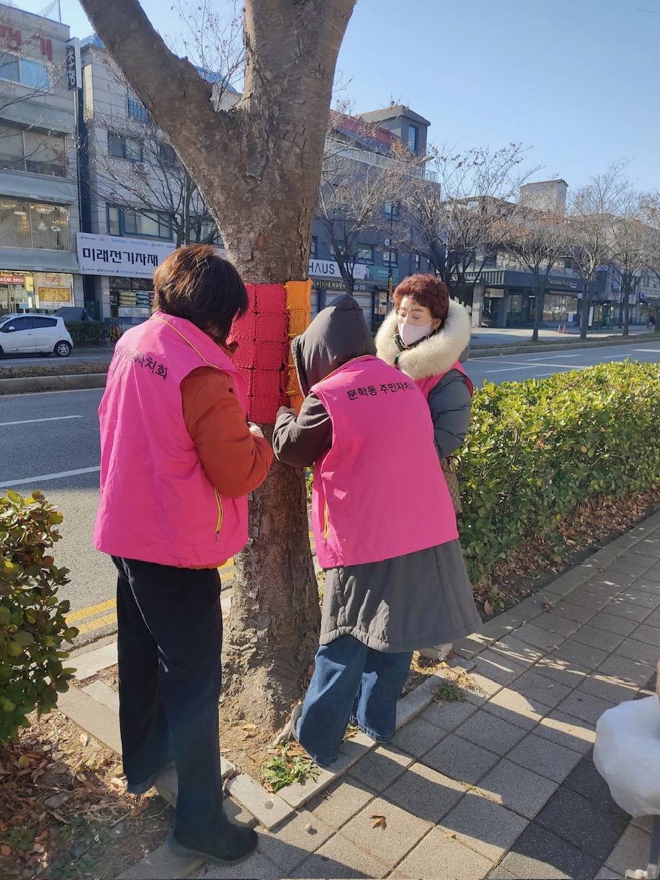 <문학동 주민자치회, 관내 가로수 잠복소 설치>