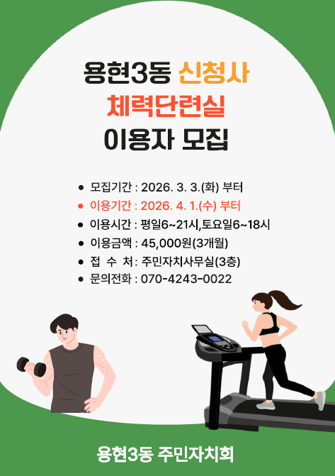 신청사 체력단련실 이용자 모집 안내