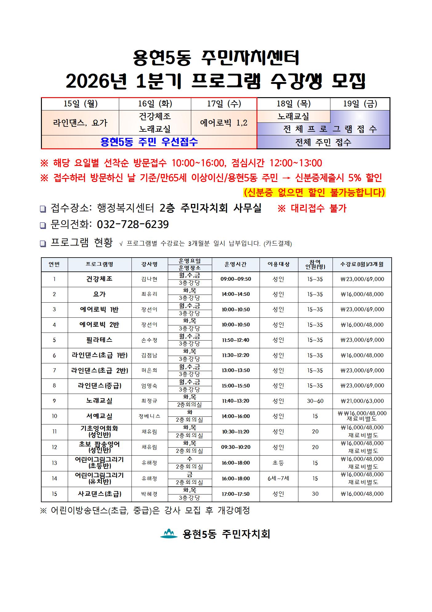 2026년 1분기 주민자치프로그램 수강생 모집 안내
