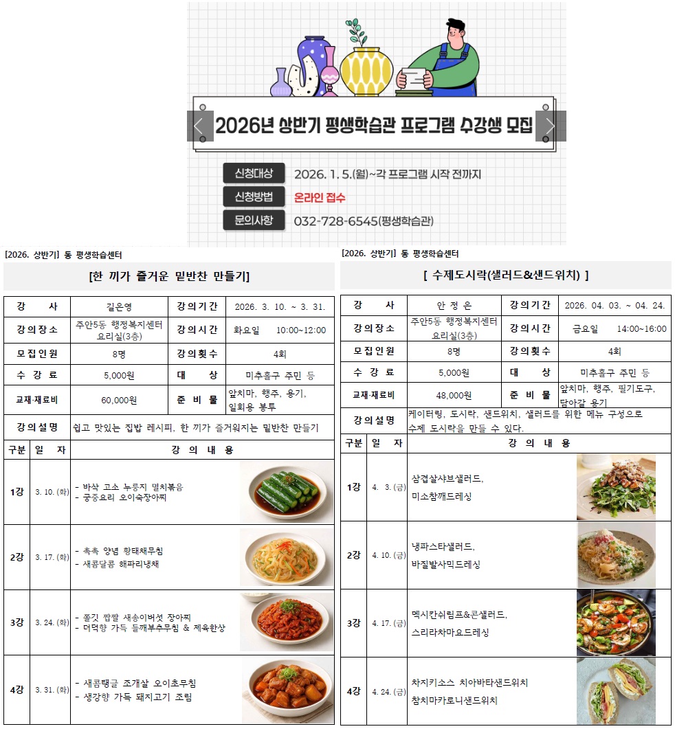2026년 상반기 동(주안5동) 평생학습센터 프로그램 안내