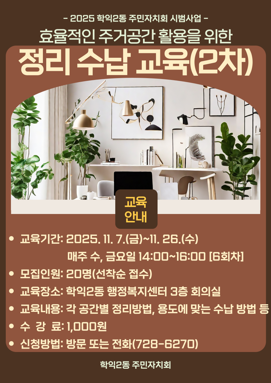 2025년 학익2동 주민자치회 시범사업 - 정리수납교육(2차) 수강생을 모집합니다.