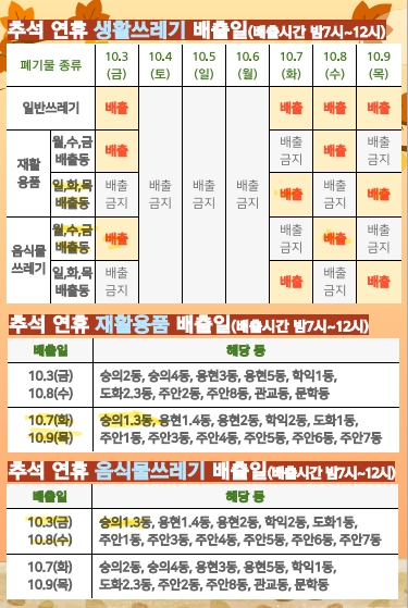 ○ 숭의1.3동 일반쓰레기: 10. 3.(금), 10. 8.(수) 이후