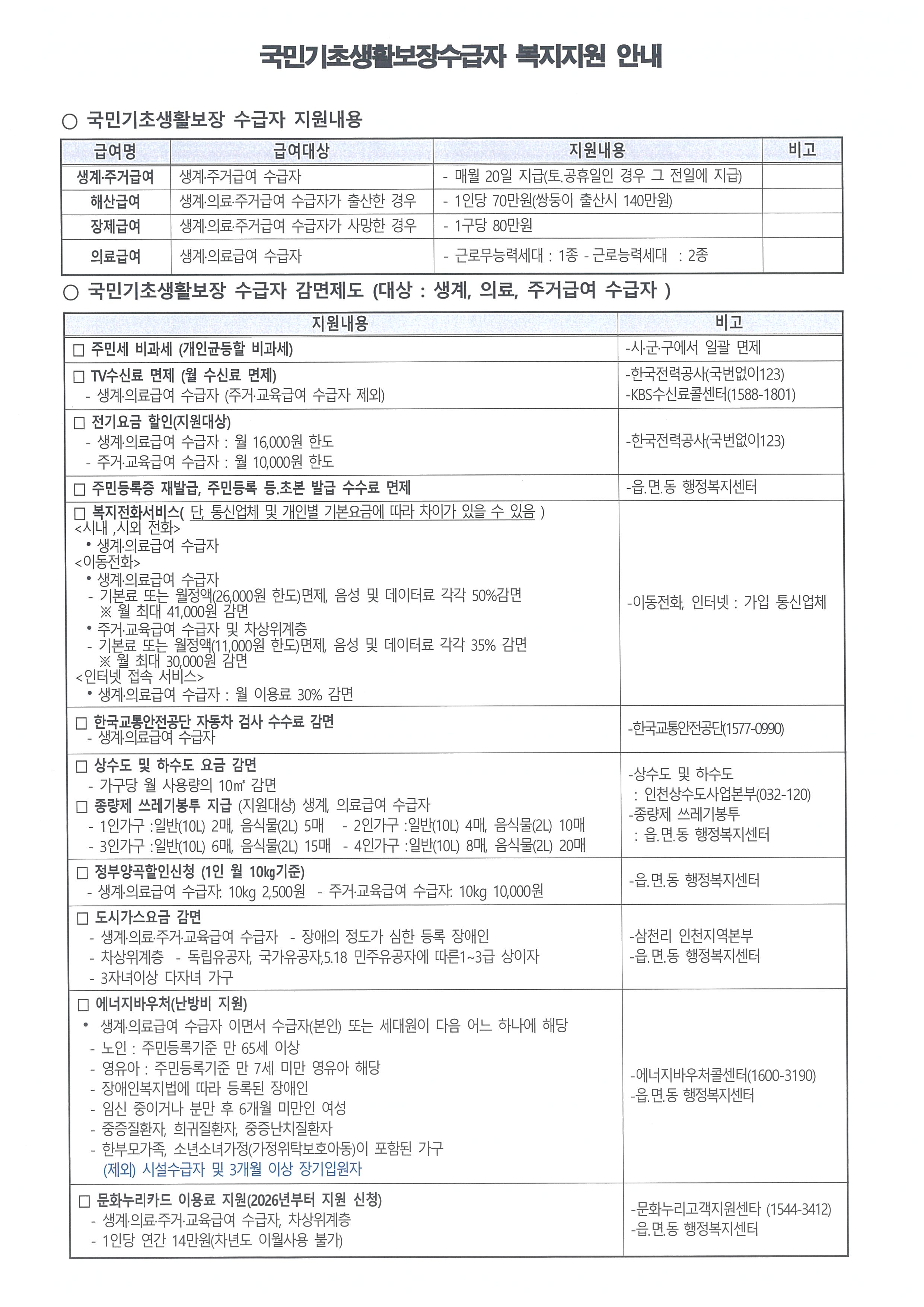 - 생계·의료·주거·교육급여 수급자