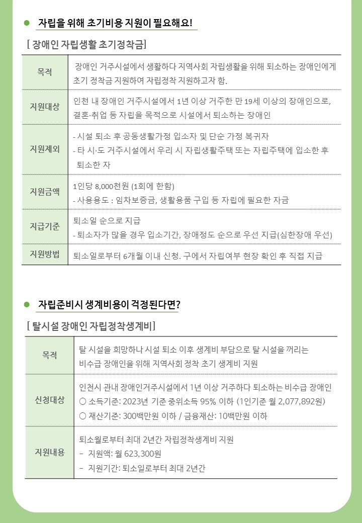 장애인 탈시설 자립지원 관련 사업 안내