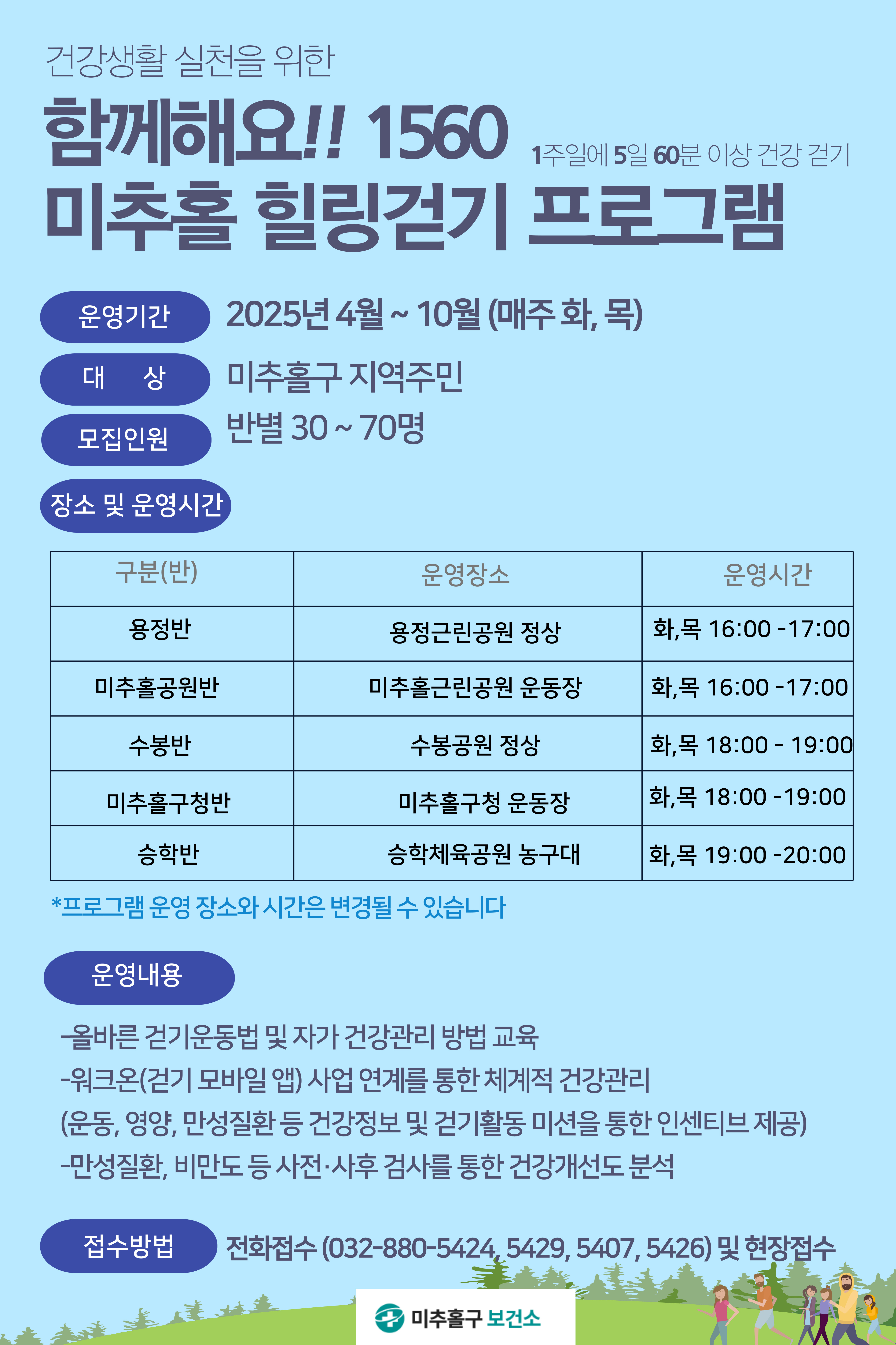 『함께해요!! 1560 미추홀 힐링걷기 프로그램』을 안내하오니 지역주민의 많은 참여 바랍니다.
