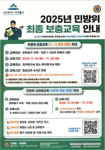 교육대상: 민방위 편성 1~2년차 대원 (4시간)