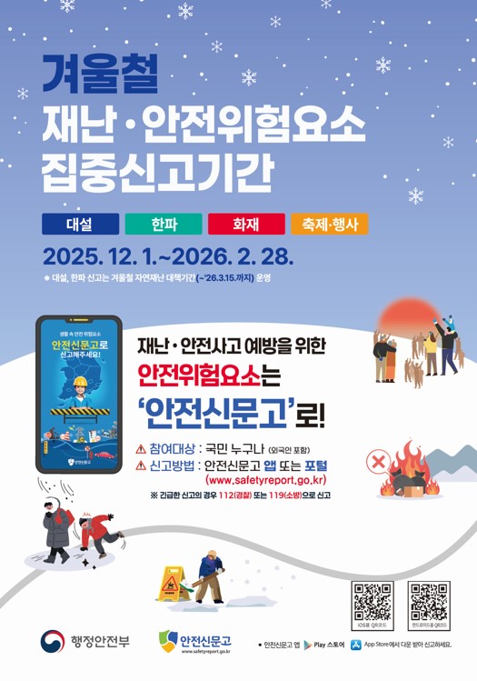 << 겨울철 재난 안전 집중신고제 운영 알림>>