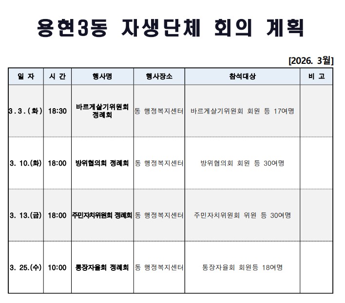 용현3동 자생단체 회의 계획(3월)을 안내드립니다.