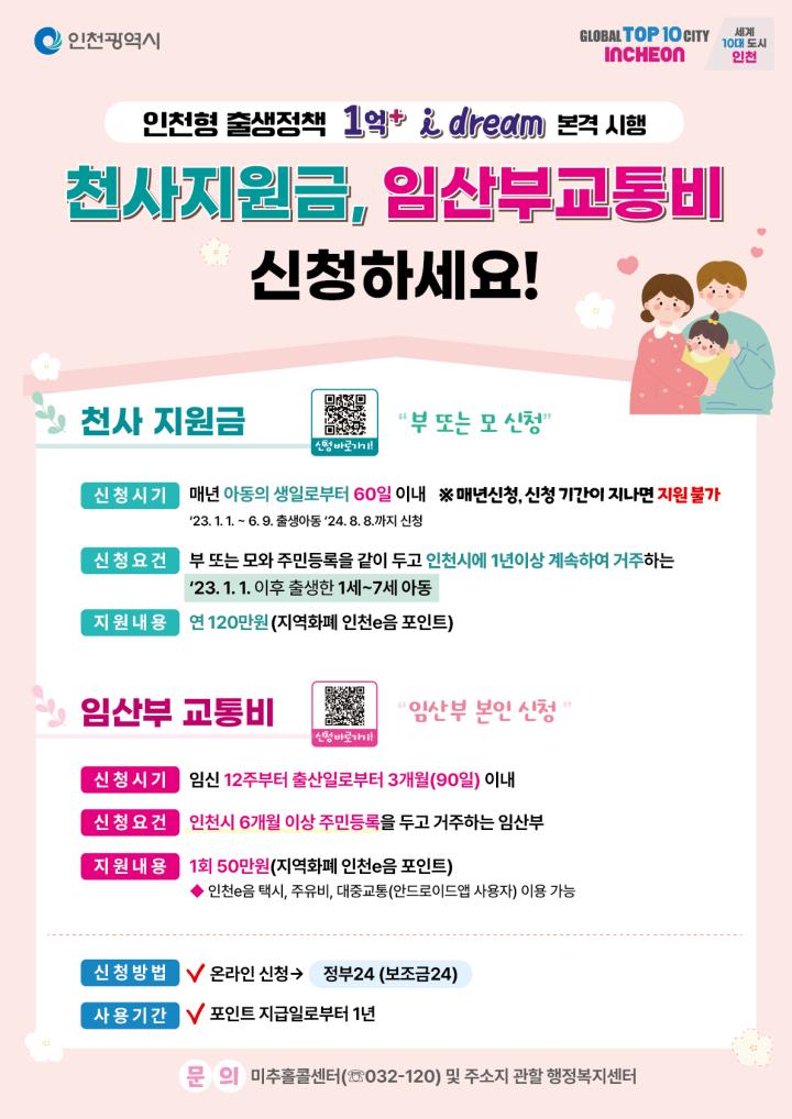 년 천사지원금 및 임산부교통비 안내