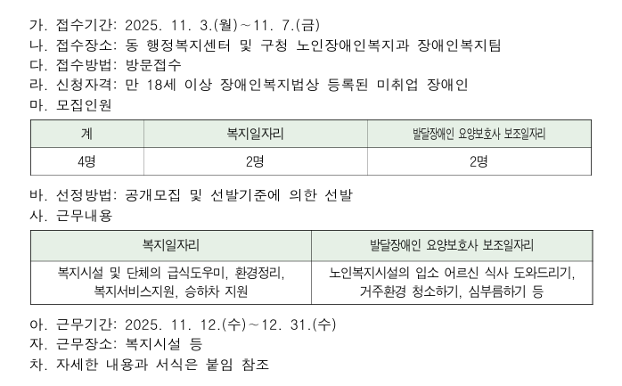 2025년 장애인일자리사업 참여자 추가모집 안내