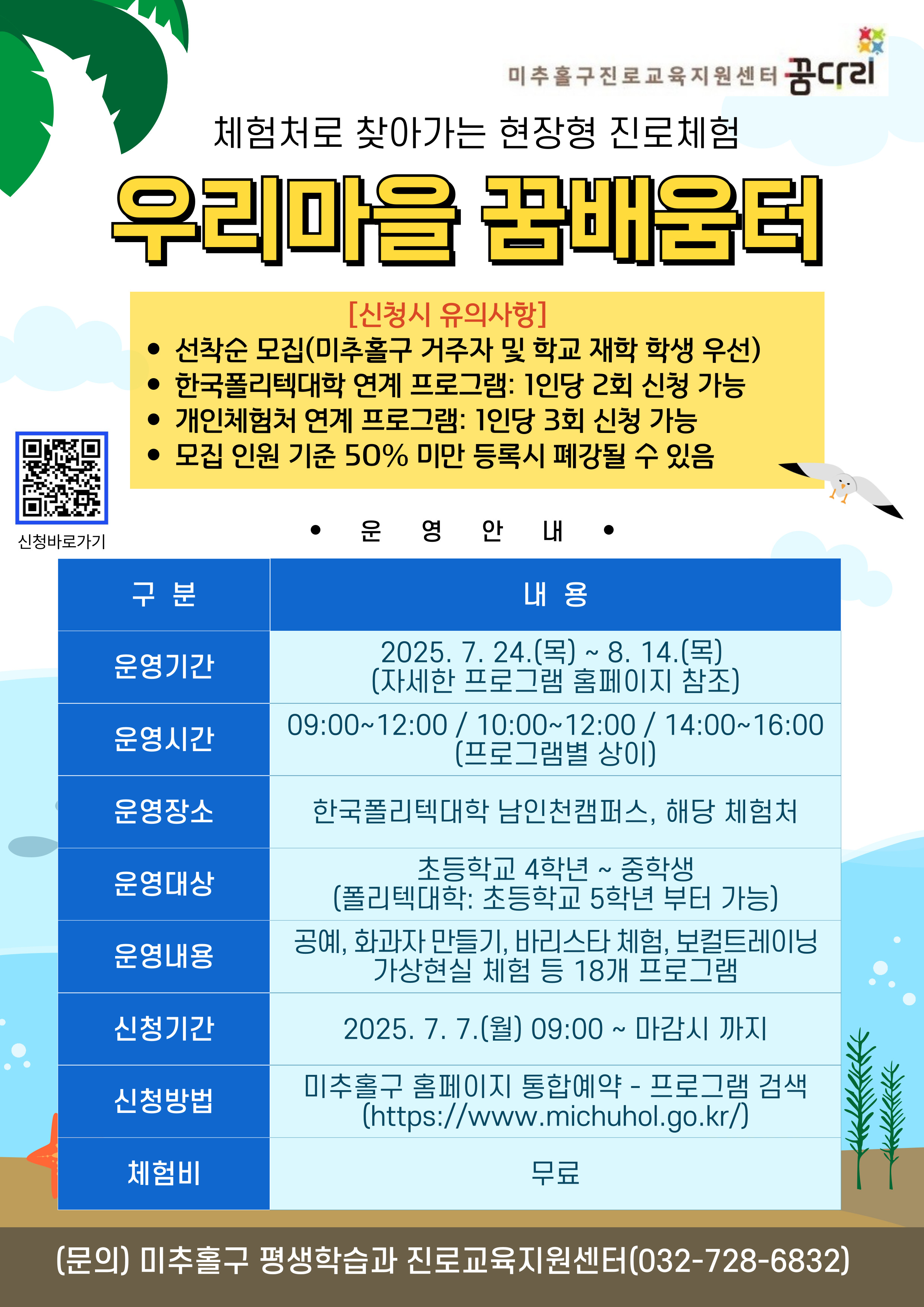 ○신청방법: 미추홀구 홈페이지 통합예약 -> 진로교육지원센터 검색으로 신청(www.michuhol.go.kr/)