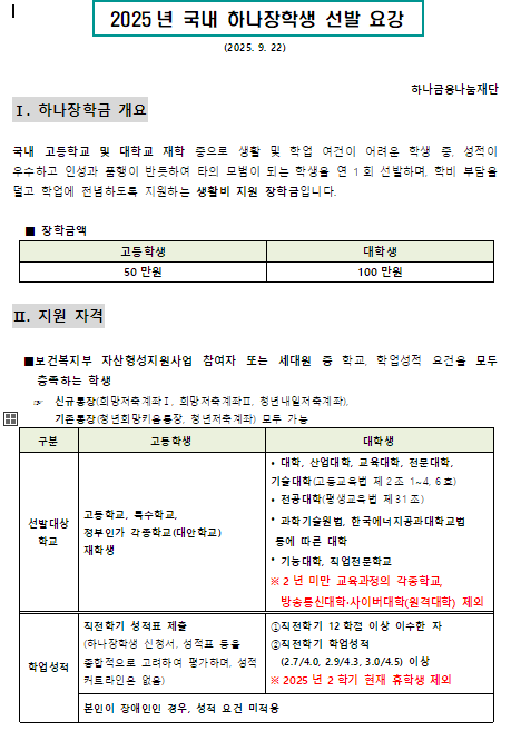 [2025년 하나장학생 선발 안내]