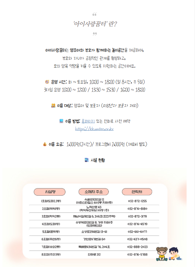 「미추홀구 아이사랑꿈터 1호점~8호점 이용 안내」