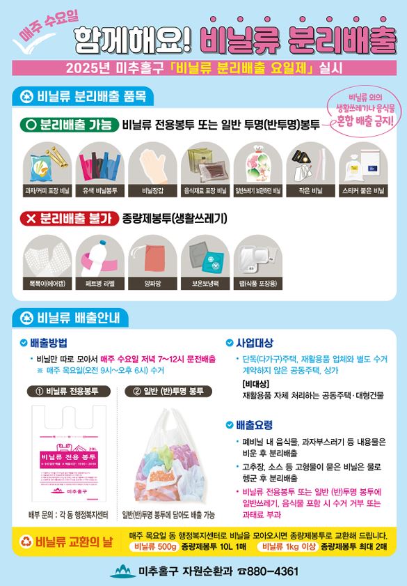 비닐류 분리배출 방법을 다음과 같이 안내하오니 많은 관심과 참여 부탁드립니다.