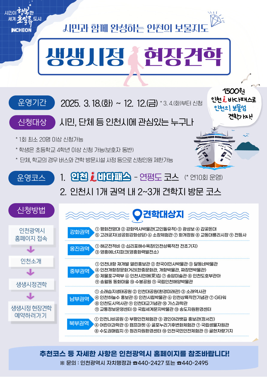 ○ 신청방법: 인천시청 누리집(홈페이지) → 인천소개 → 인천안내 → 생생시정견학 신청