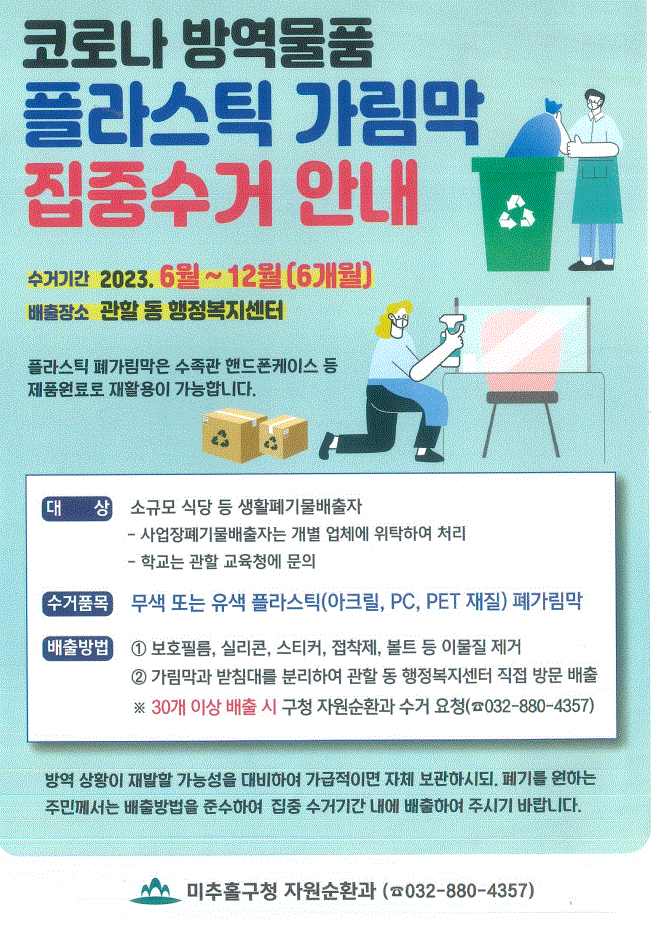 코로나 방역물품 플라스틱 가림막 집중수거 안내