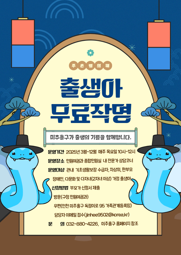 2025년 3월부터 출생아 무료작명서비스를 운영하오니 많은 참여 부탁드립니다.