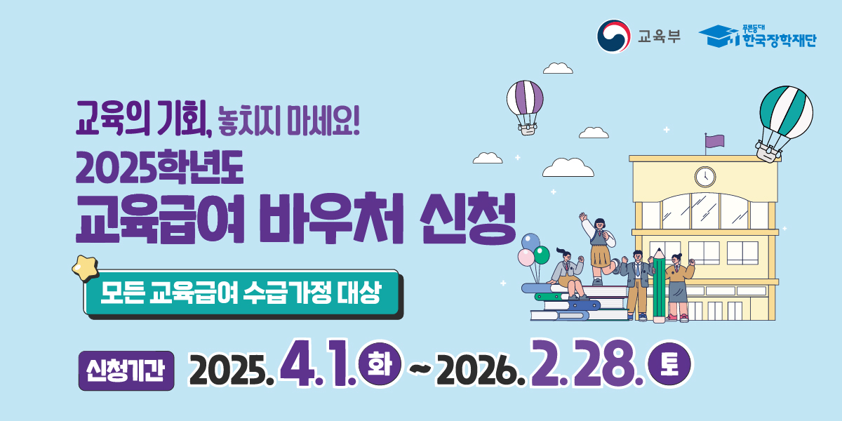 기존 수급 가정(학생)도 반드시 바우처 신청을 별도로 하셔야 합니다. (단, 2024학년도 교육급여 바우처를 신용·체크카드 및 간편결제로 지원받은 경우 2025학년도 바우처 자동신청 지원)