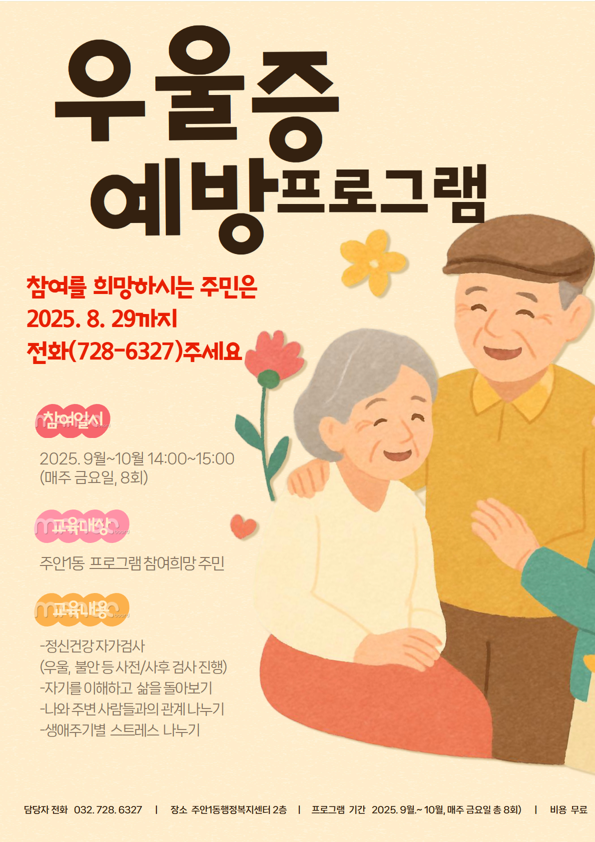 2025.9월~10월 , 매주 금(8회, 14:00~15:00), 우울증예방프로그램을 진행하니,