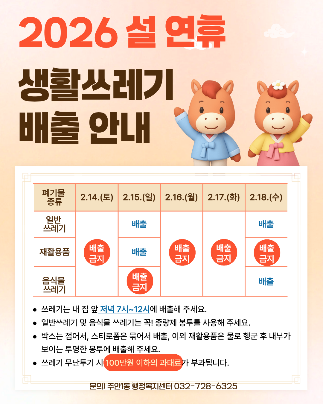 주안1동 설 연휴 생활 폐기물 배출일 안내