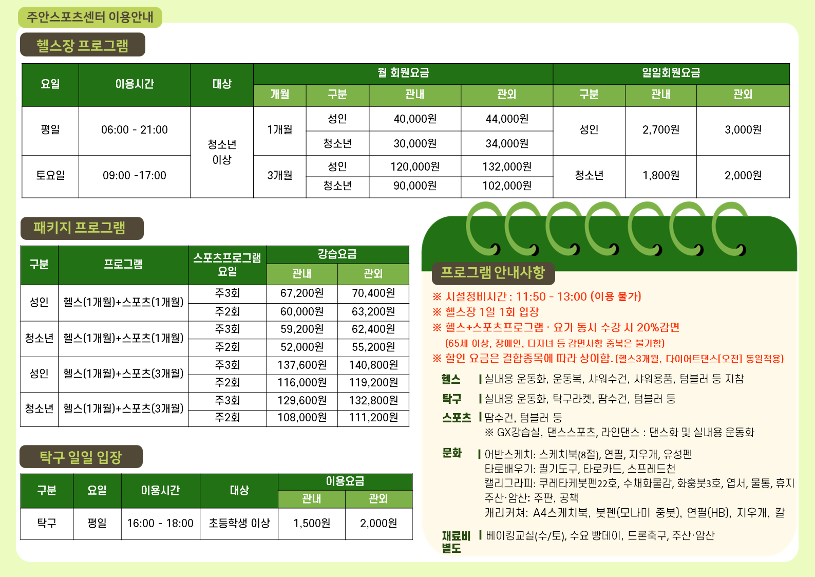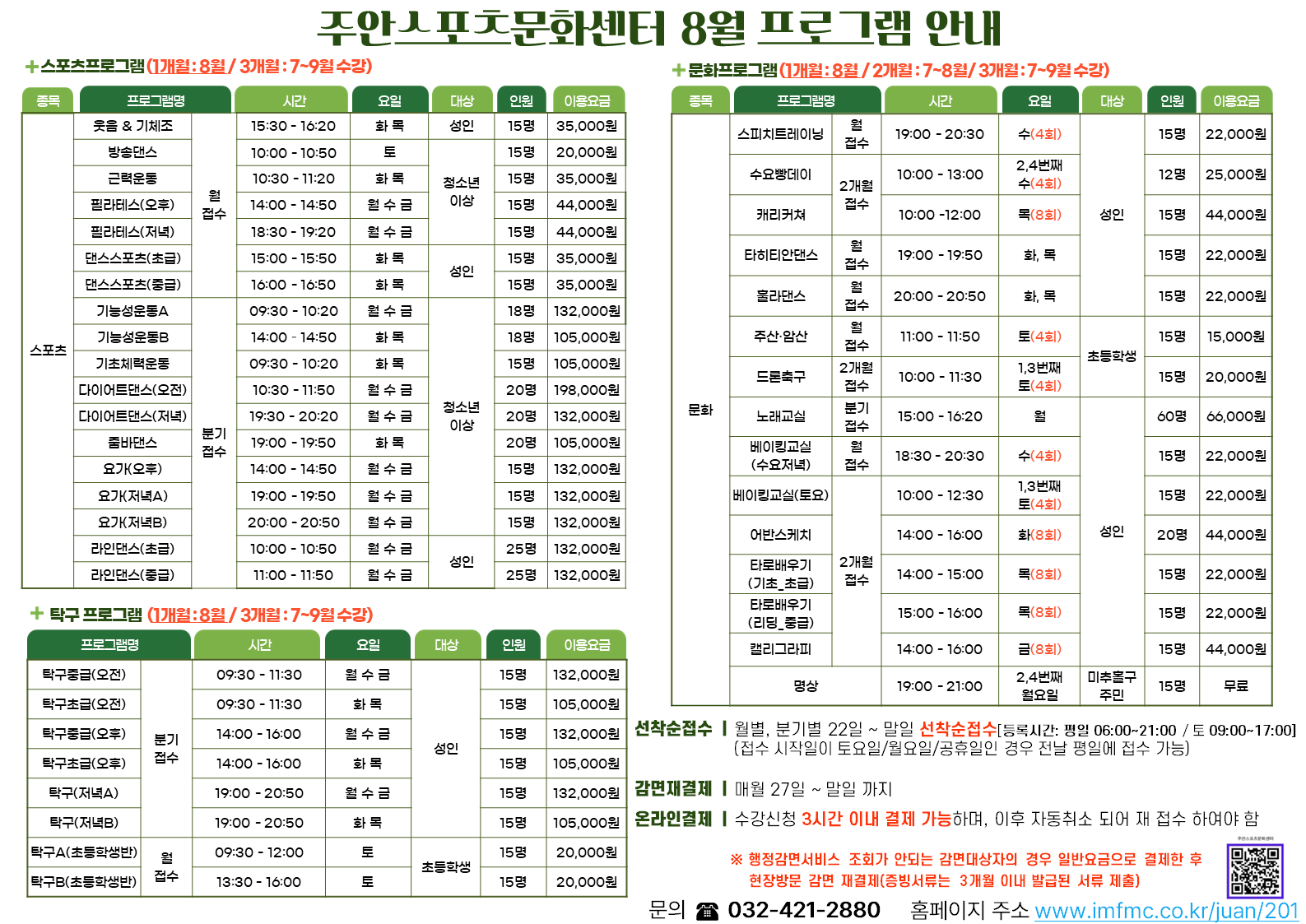 주안스포츠문화센터 8월 프로그램을 아래와 같이 안내하오니, 많은 이용 부탁드립니다.