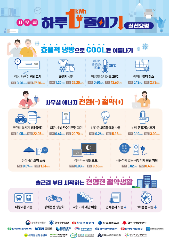 에너지 절약을 위한 사무실용 하루 1kWh 줄이기 실천요령 안내