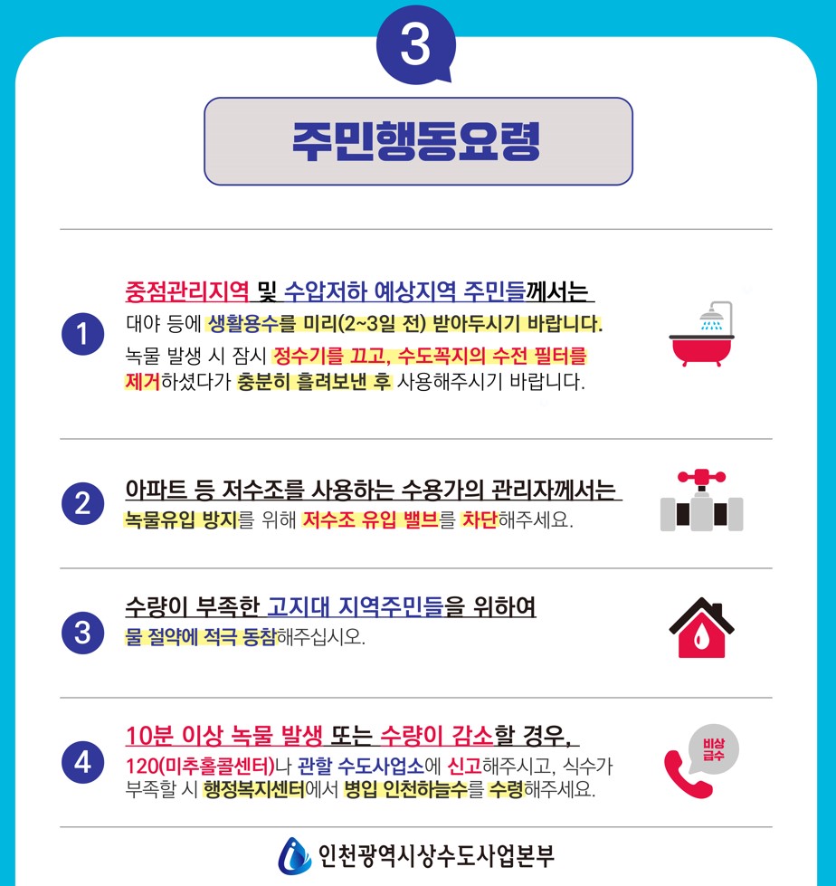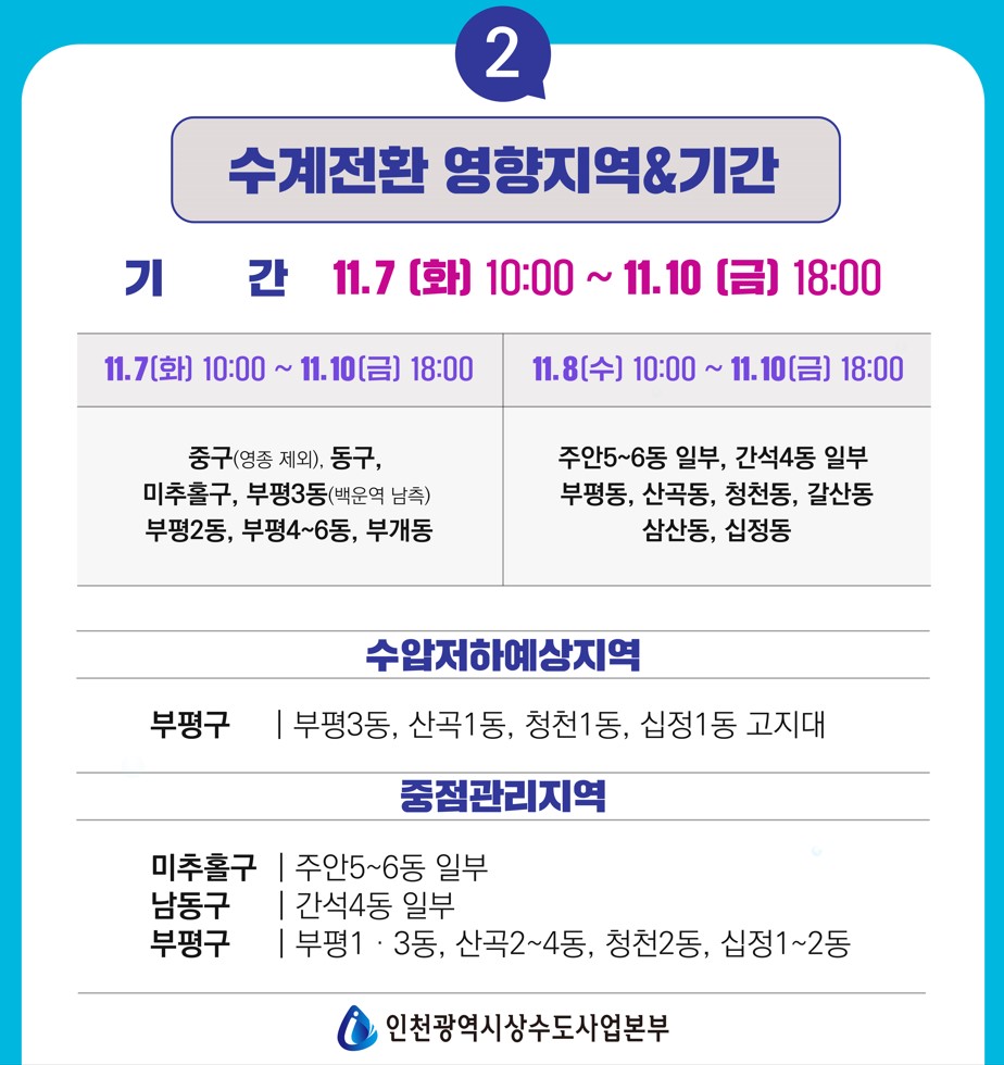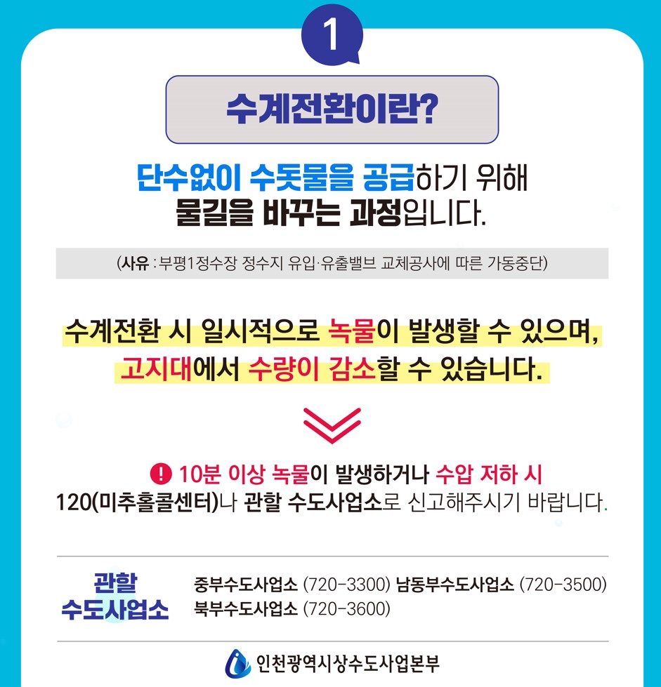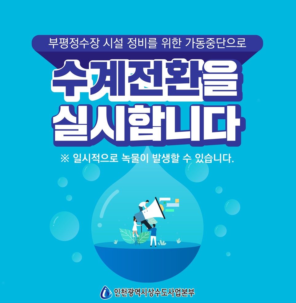 부평정수장 시설 정비를 위한 가동중단으로 수계전환 실시 알림