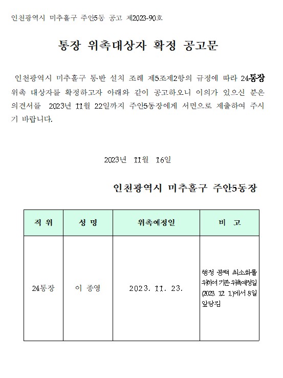 24통장 위촉대상자 확정 공고(수정)