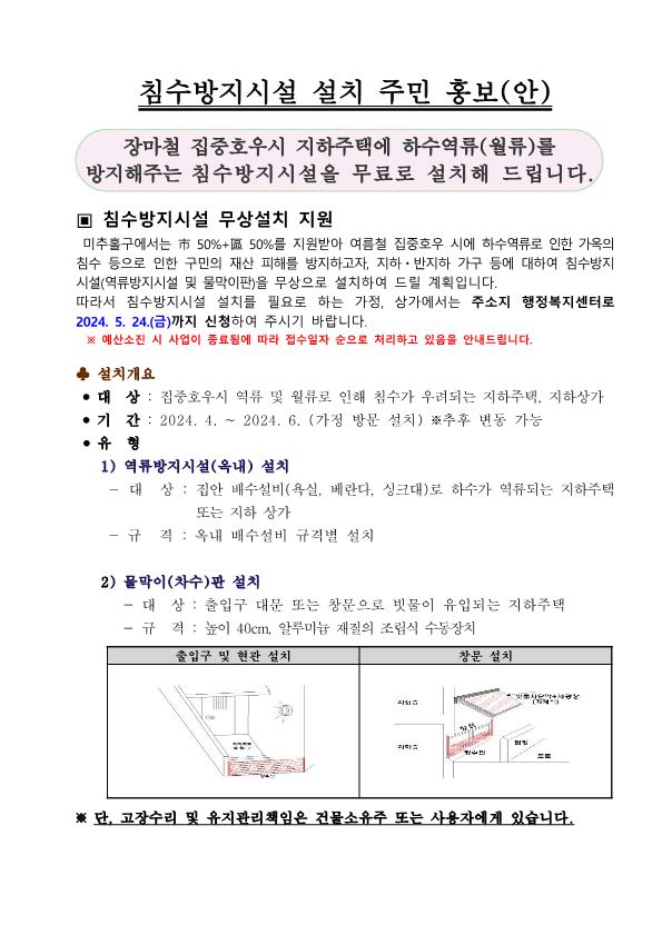 2024년 침수방지시설 설치 사업 홍보
