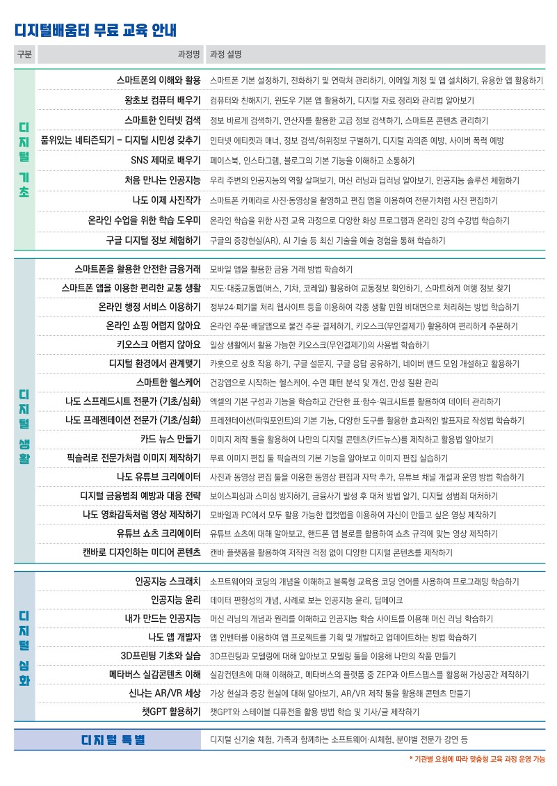 신 청: 전화(1800-0096) 또는 온라인(디지털배움터.kr)