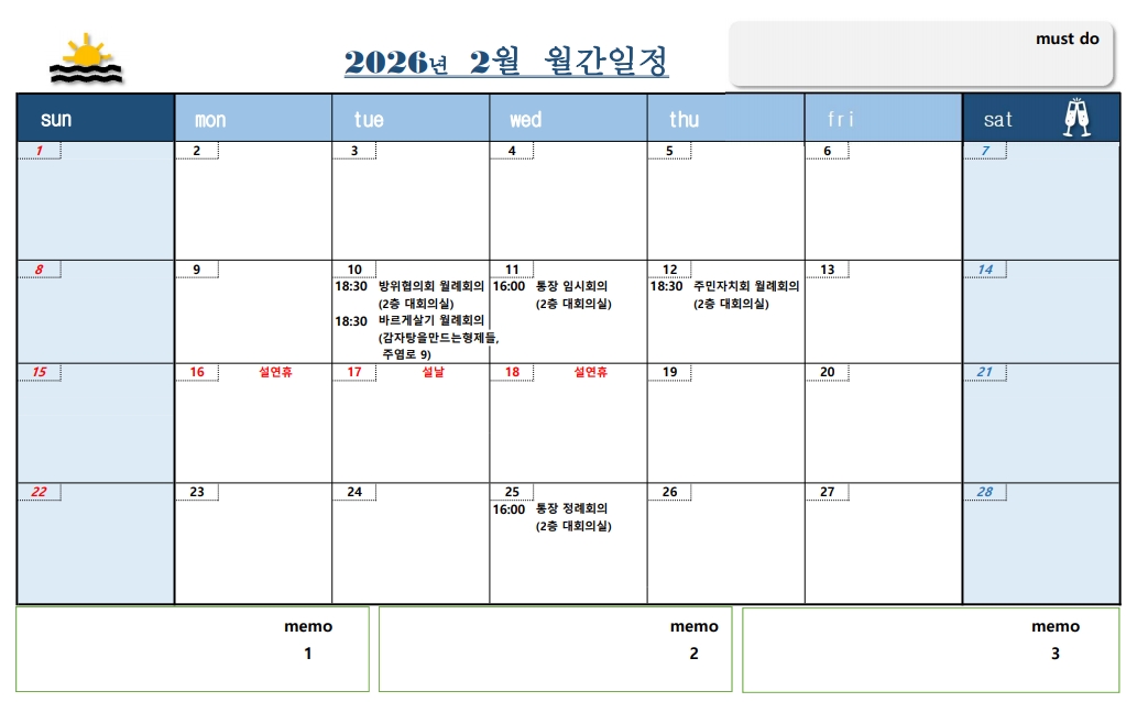 2026년 2월 주안5동 회의 일정 안내드립니다.