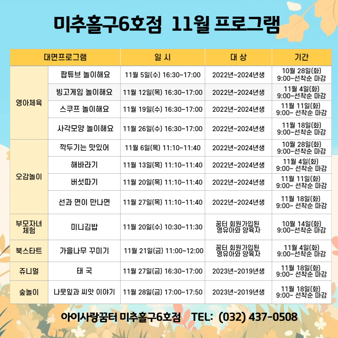 아이사랑꿈터 6호점 11월 프로그램 안내