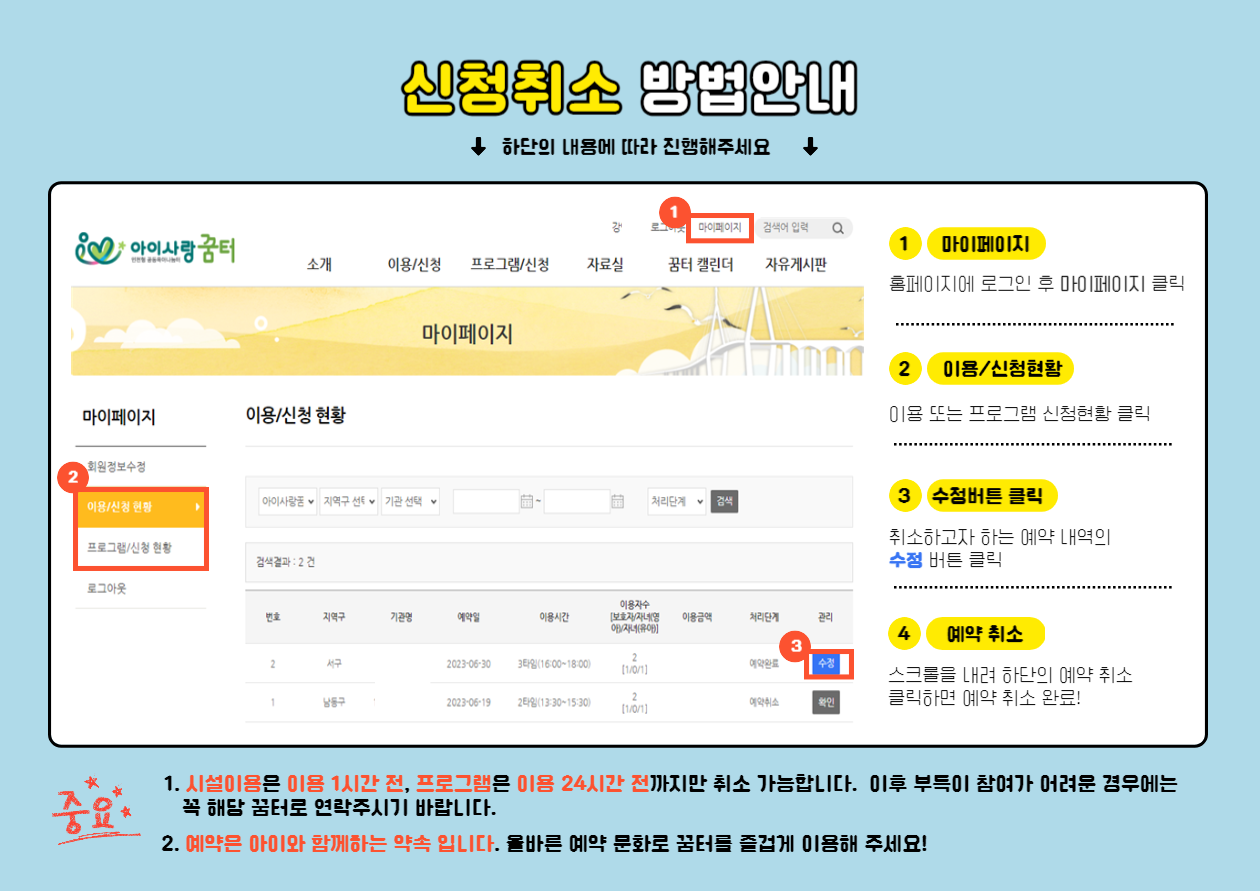 [아이사랑꿈터] 아이사랑꿈터 신청취소 방법안내