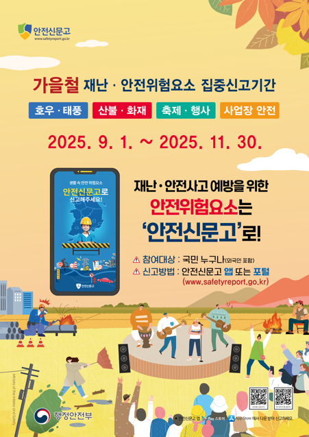 가을철 재난·안전위험요소 집중신고제 안내