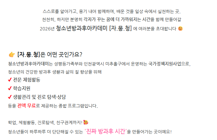 2026년 청소년방과후아카데미 [자.몽.청] 안내