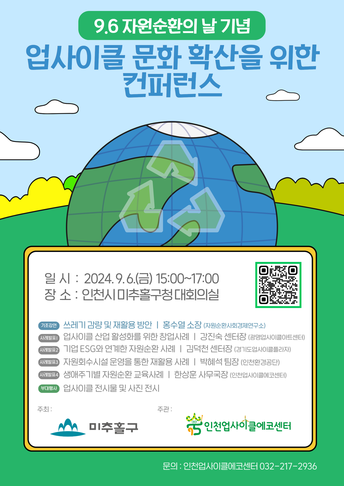 9월 6일 자원순환의 날을 기념하여 미추홀구청에서 업사이클 문화 확산을 위한 컨퍼런스를 개최합니다.