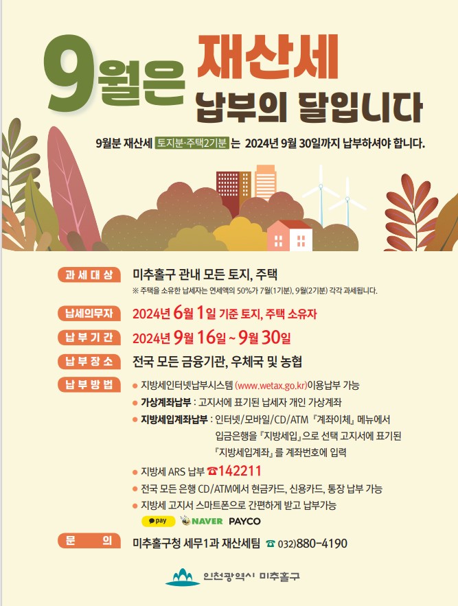○ 문의처: 미추홀구청 세무1과 재산세팀(☎032-880-4190)