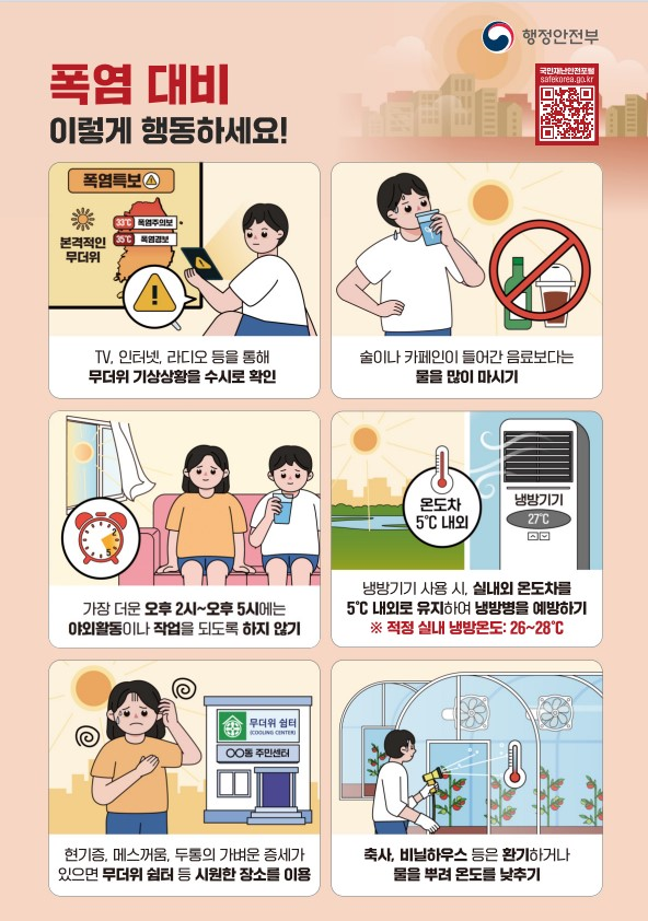 야외작업 등 건강에 유의하시고 폭염시 행동요령을 숙지하시기 바랍니다.