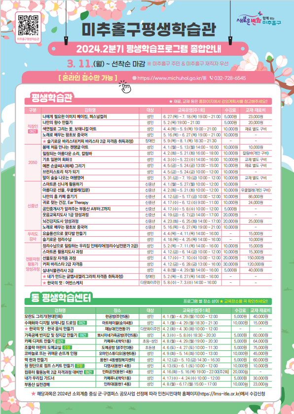 □ 2024년 2분기 미추홀구 평생학습관 프로그램 수강생 모집