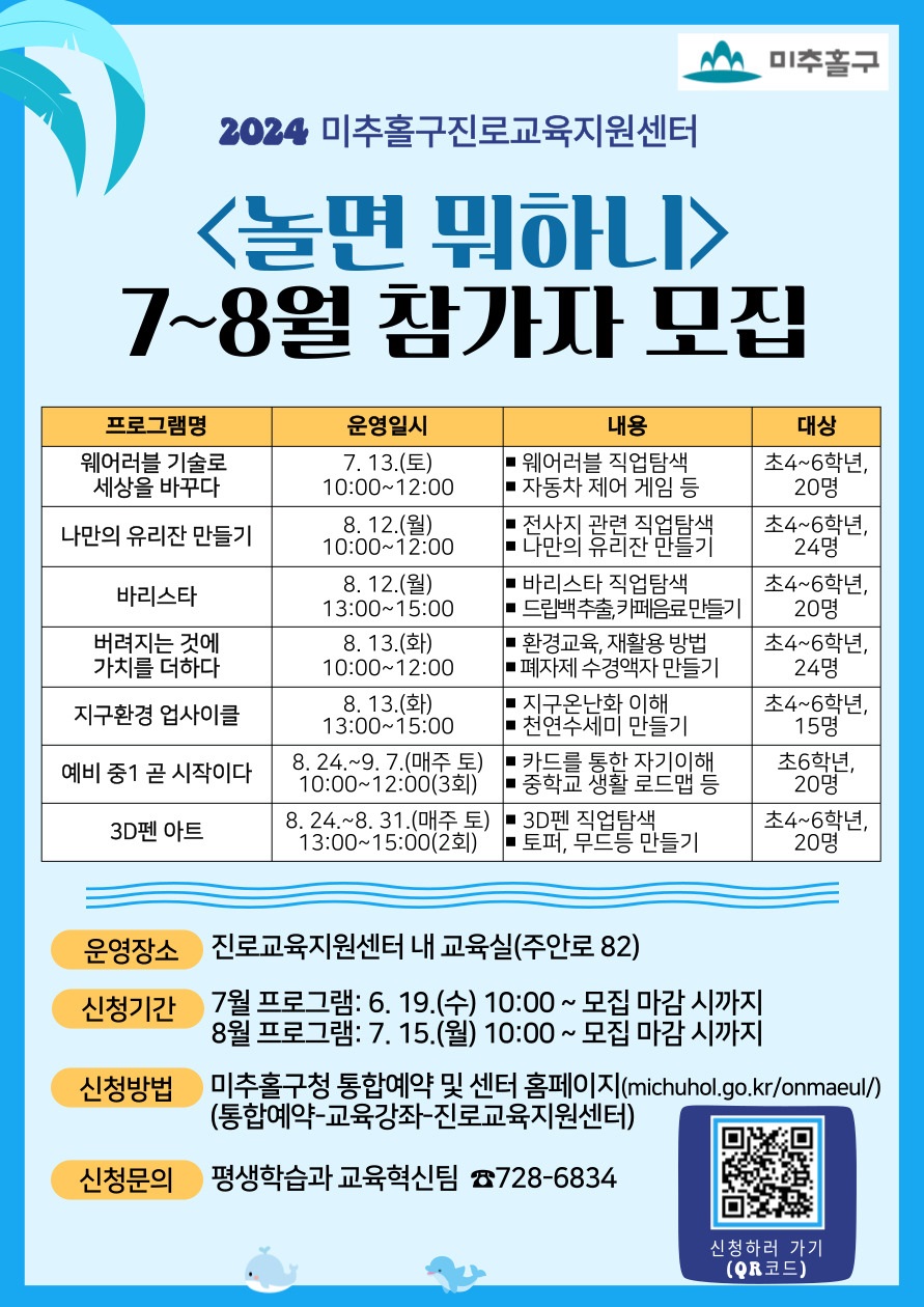 2024년 미추홀구진로교육지원센터 놀면 뭐하니 7~8월 프로그램 참가자 모집